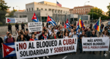 Protestas en Madrid denuncian el bloqueo de Estados Unidos contra Cuba