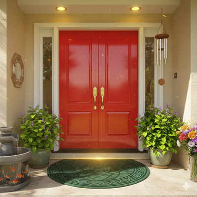 Asegúrate de que la puerta esté bien pintada y pulida; vuelve a pintarla si está desgastada (el rojo o tonos vibrantes potencian la energía del elemento fuego) y coloca plantas en macetas en la entrada para atraer positividad y vitalidad.