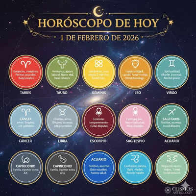 Lee el horóscopo de hoy, 1 de febrero de 2026. Hoy analizamos en detalle lo que los astros tienen preparado para cada uno de los 12 signos del zodiaco. Nuestro astrólogo ha estudiado el movimiento de los planetas y la alineación de las estrellas para ofrecerte las predicciones más precisas y actualizadas del día. Ya sea que busques orientación en el amor, el trabajo o simplemente una advertencia sobre lo que te espera, aquí lo encontrarás. Descubramos qué te depara el cosmos hoy.