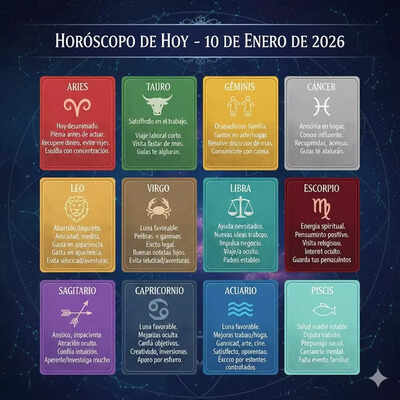 Lee el horóscopo de hoy, 10 de enero de 2026. Hoy analizamos más de cerca lo que las estrellas tienen preparado para cada uno de los 12 signos del zodiaco. Nuestro astrólogo ha estudiado los movimientos planetarios y la alineación de las estrellas para ofrecerte las predicciones más precisas y actualizadas del día. Ya sea que busques orientación en el amor, el trabajo o simplemente quieras saber qué te espera, aquí lo encontrarás. Veamos qué tiene preparado el cosmos para ti.