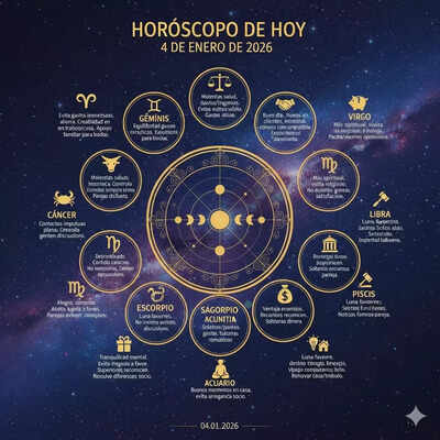 Lee el horóscopo de hoy, 4 de enero de 2026. Hoy echaremos un vistazo más profundo a lo que las estrellas tienen preparado para cada uno de los 12 signos del zodiaco. Nuestro astrólogo ha analizado los movimientos de los planetas y la alineación de las estrellas para ofrecerte predicciones precisas y actualizadas para el día que tienes por delante. Ya sea que busques orientación en el amor, el trabajo o simplemente una pista sobre lo que puedes esperar hoy, aquí encontrarás una guía completa. Veamos qué te depara el cosmos hoy.
