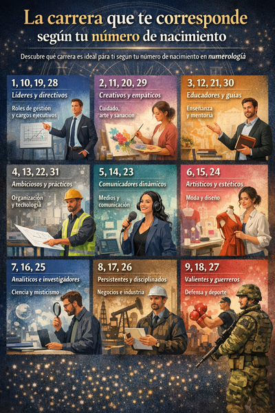 La numerología sostiene que cada número de nacimiento está asociado a ciertas cualidades personales que pueden orientar el camino profesional más afín a cada individuo. Este enfoque interpreta la energía de los números para identificar fortalezas, rasgos de carácter y áreas donde una persona puede desarrollar su máximo potencial.