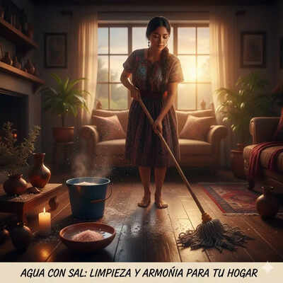 Disuelve una cucharada de sal en un balde con agua tibia y úsala para trapear el piso. Comienza desde la entrada del hogar y avanza en sentido circular por cada habitación. Este ritual suele realizarse los martes o durante luna llena, momentos asociados con limpieza y renovación energética.