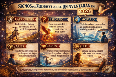 Con los cambios planetarios, el año 2026 traerá transformaciones importantes en la vida de algunos signos del zodiaco. Desde cambios de carrera hasta la salida de relaciones tóxicas, la astrología predice que estos signos se reinventarán por completo. Veamos cuáles son los signos que están destinados a este proceso de redescubrimiento personal.