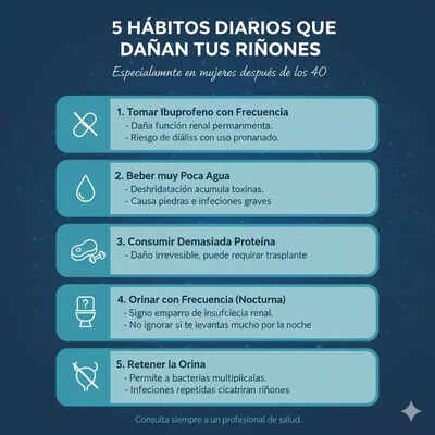 En Estados Unidos, uno de cada siete adultos padece enfermedad renal crónica (ERC), según el Instituto Nacional de Diabetes y Enfermedades Digestivas y Renales. Esto equivale a unos 35,5 millones de estadounidenses. La falta de síntomas en las primeras etapas agrava aún más la situación. Si bien varios factores contribuyen a las enfermedades renales, algunos hábitos cotidianos pueden estar dañando silenciosamente este órgano vital. En un video compartido en Instagram, el Dr. John Valentine, médico certificado en Estados Unidos, explica cinco hábitos diarios que pueden poner en riesgo los riñones de las mujeres después de los 40 años. ¿Cuáles son? Veámoslos.