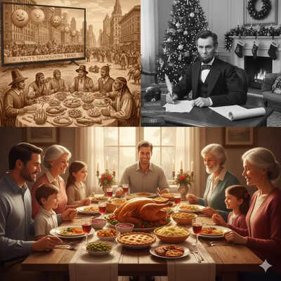 El presidente Abraham Lincoln declaró el Día de Acción de Gracias como feriado nacional durante la Guerra Civil. Quería que la gente se detuviera a valorar las cosas buenas, incluso en tiempos difíciles.
