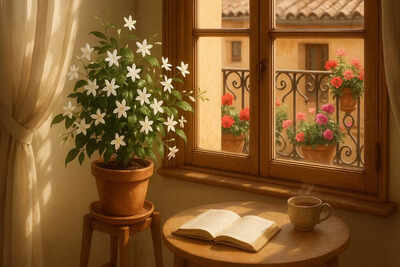 Con sus pequeñas flores blancas y su perfume envolvente, el jazmín no es solo una planta ornamental; es un símbolo de serenidad, pureza y bienestar. Su fragancia embriagadora, capaz de aliviar el alma al final de un día agitado, convierte balcones, ventanas y patios en verdaderos jardines del alma.