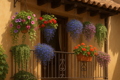 Ocho Flores Colgantes Perfectas para el Balcón Hispano :Las flores colgantes no son todas iguales. Algunas destacan por su color, otras por su resistencia al sol, otras por su caída natural. Aquí te presentamos una selección inspirada en el artículo del Times of India, con un enfoque en cómo cada una de estas especies puede integrarse maravillosamente en un balcón hispano lleno de vida, luz y carácter.