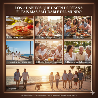 España vuelve a encabezar el ranking mundial de salud, según el índice global elaborado por Bloomberg. Nuestro país ha superado a otros europeos como Italia y Francia, gracias no solo a su sistema sanitario, sino también a una forma de vida que combina buena comida, relaciones sociales sólidas y un ritmo más relajado.