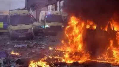 Según las imágenes de CCTV, se vio a tres personas acercándose a una de las ambulancias y encendiéndola. Más tarde se vio a los sospechosos huyendo de la escena, con columnas de humo espeso que se elevaban hacia el cielo.