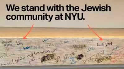 "El odioso grafiti descubierto en la Biblioteca Bern Dibner de la Universidad de Nueva York, que incluye símbolos y insultos antisemitas dirigidos a estudiantes indios y otras comunidades, es profundamente inquietante y totalmente inaceptable.