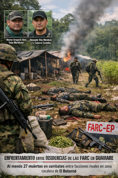 Colombia enfrenta nuevamente la violencia de grupos armados al confirmarse que al menos 27 personas murieron en enfrentamientos entre facciones disidentes de las antiguas FARC en el departamento del Guaviare, en el centro‑sur del país. El choque ocurrió en áreas rurales del municipio de El Retorno, una zona estratégica marcada por la presencia de cultivos de coca y rutas de tráfico de drogas.