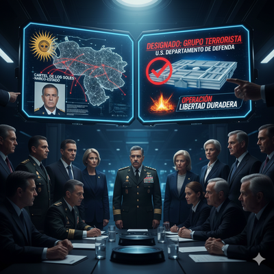 La relación entre Estados Unidos y Venezuela volvió a tensarse después de que Washington anunciara que el llamado Cártel de los Soles será tratado oficialmente como una organización terrorista. La medida, que cayó como bomba en Caracas, abre una nueva etapa de presión contra el gobierno de Nicolás Maduro.