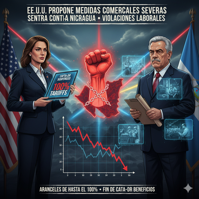 La Oficina del Representante de Comercio de Estados Unidos (USTR, por sus siglas en inglés) anunció el lunes la propuesta de imponer medidas comerciales significativas contra Nicaragua, incluyendo aranceles de hasta el 100 % sobre los productos nicaragüenses y la suspensión de los beneficios que ese país recibe bajo el Tratado de Libre Comercio entre Centroamérica, República Dominicana y Estados Unidos (CAFTA-DR).