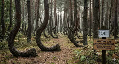 En el noroeste de Polonia se encuentra el Bosque Torcido (Krzywy Las), un bosque protegido formado por aproximadamente 400 pinos silvestres (Pinus sylvestris) que crecen de una manera que no se ajusta a lo natural. Los árboles fueron plantados alrededor de 1930, y cada uno presenta una curva pronunciada de 90 grados en la base, todos orientados hacia el norte, tras lo cual la mayoría vuelve a crecer hacia arriba.