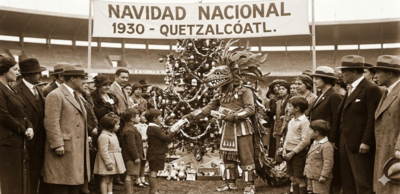 El experimento cultural alcanzó su momento más visible el 23 de diciembre de 1930, cuando se organizó un evento masivo en el Estadio Nacional de la Ciudad de México. Allí, se levantó una réplica de un templo dedicado a Quetzalcóatl y la primera dama, Josefina Ortiz, repartió juguetes, ropa y dulces a miles de niños “en nombre del Gran Señor Quetzalcóatl”. La imagen de la serpiente emplumada cargando regalos bajo un árbol decorado quedó grabada en la memoria de quienes asistieron.