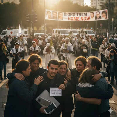 En la Plaza de los Rehenes de Tel Aviv, un número creciente de personas se ha congregado, algunos participando en los rezos del servicio de Hoshana Rabba mientras esperan la liberación de los cautivos.