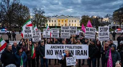 Las protestas tuvieron lugar frente a la Casa Blanca y en lugares emblemáticos como Times Square, en Nueva York, donde cientos de personas denunciaron la participación militar estadounidense en Oriente Medio y cuestionaron la legalidad de la operación.