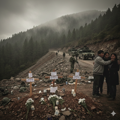 Los cuerpos fueron localizados durante un operativo de búsqueda en caminos de difícil acceso, luego de varios días de rastreos por tierra y aire. El hallazgo cimbró a comunidades cercanas, donde la noticia corrió rápido y dejó un ambiente de dolor, coraje e incertidumbre entre familiares y habitantes de la región.